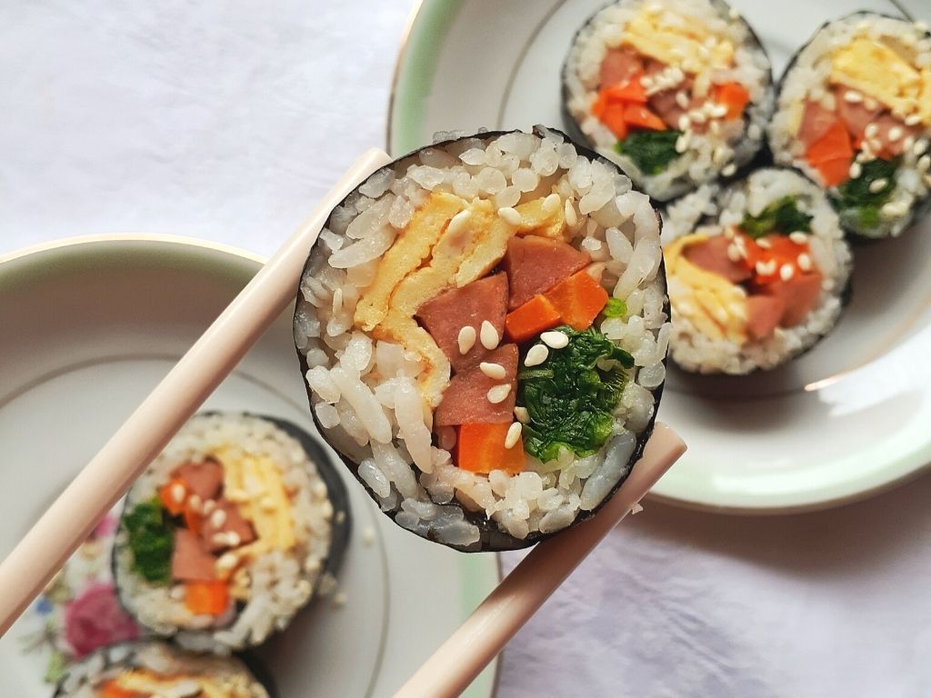 - Gimbab or Kimbap – Nori (seaweed) rolled with sushi rice and filled with vegetables and meat.