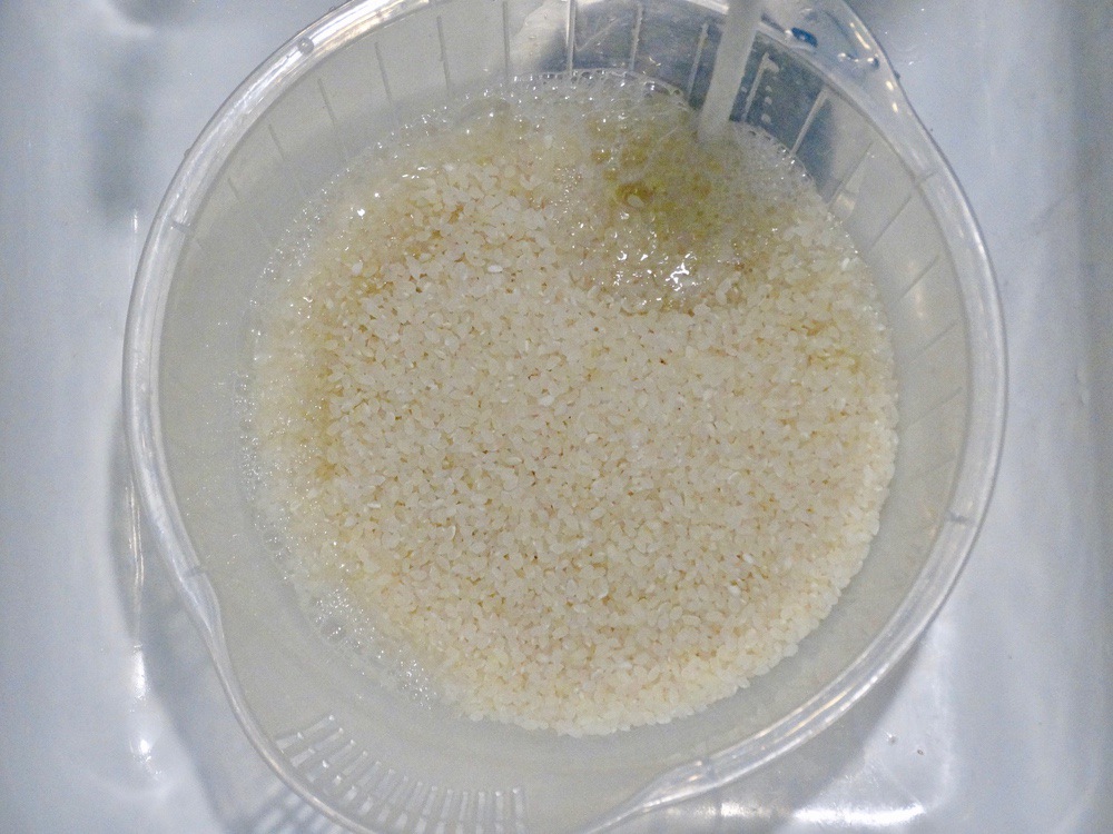 No matter how you cook your rice, the first step is always to rinse the rice until the water runs clear.