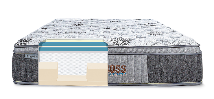 The Prosperity + Gel blends softness and pressure relief for a traditional feel. The plush, supportive feel has a touch of bounce for side sleepers who want to eliminate pressure points without feeling “stuck.” Layers include 3-layered gel memory foam combined with super soft comfort and support foams, firm HD support foam, and an individually pocketed coil system with high-resiliency base and edge support foam. Prosperity’s comfort and support foams bounce back quickly, so that you can move around easily. Better yet, the gel layer at the top delivers night-long coolness.