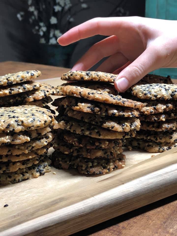 These crisp and sweet (but not too sweet) cookies are a nod to traditional Southern benne wafers. Tahini and sesame seeds (in black and white) make for a cookie that is as delightful to look at as it is to eat! The crispy texture and nutty flavor is an interesting change from your average cookie recipes.